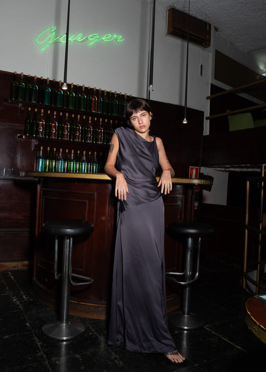 Precio habitual €129,00 EURPrecio habitualPrecio unitario / por€149,00 EURPrecio de oferta €129,00 EUROfertaVestido Rina Gris 'Cupro Touch'